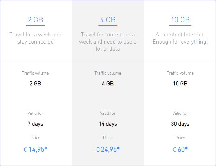 MTX Connects provides 4GB data capacity plan at 24.95EUR with 14-days validity. It would be the best choice in case you travel up to 14days(2 weeks) in Japan as well as neighboring countries, such as Korea, China, HK, Taiwan and more.